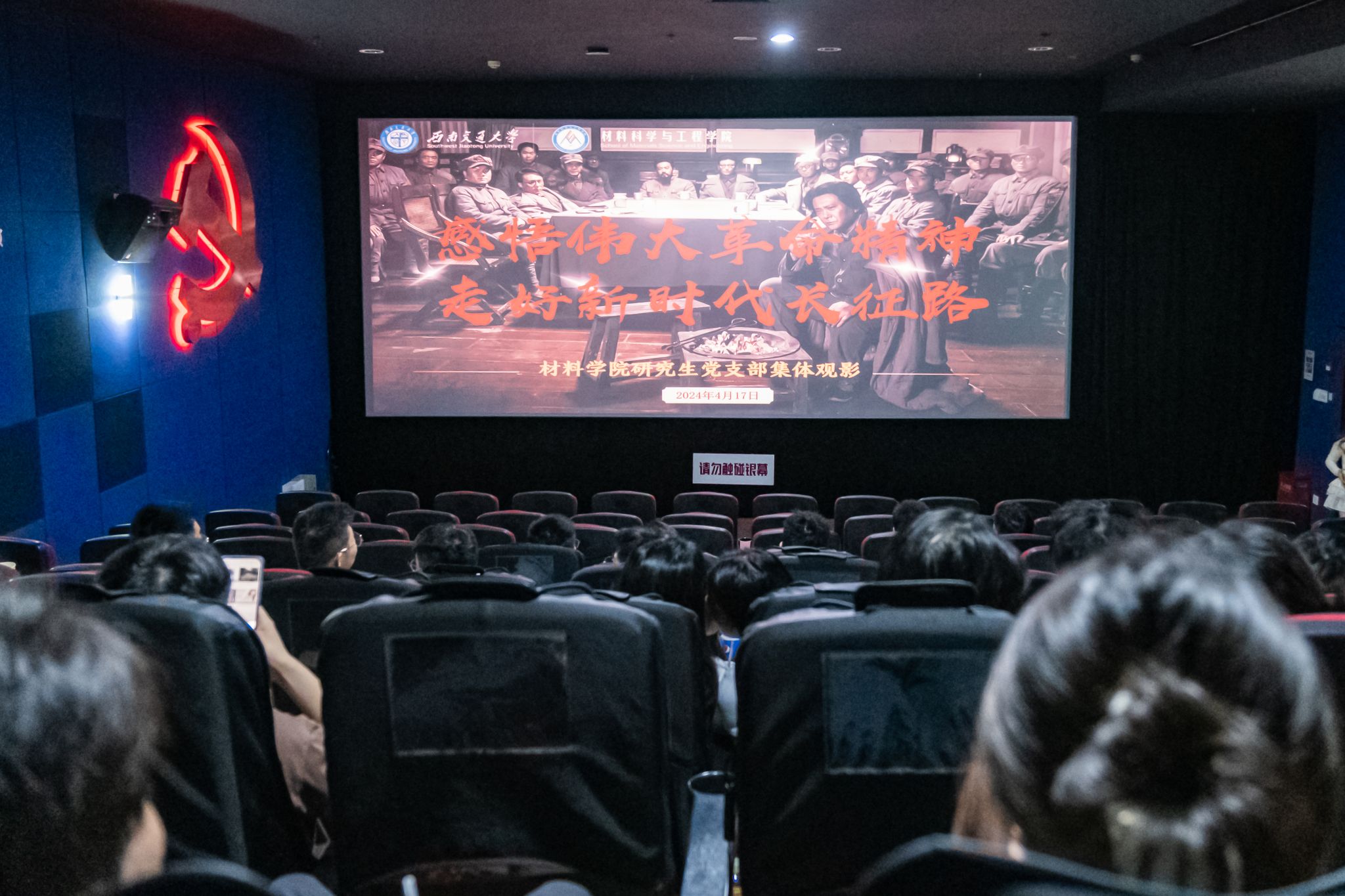 革命精神是党和国家的宝贵财富,是新时代中国共产党人的精神力量源泉。2024年4月17日,材料学院党委组织研究生党支部集体观看重大历史革命题材电影《绝地重生》,重温红色记忆、感悟红色精神,弘扬传承伟大革命精神。活动覆盖教师党员、学生支部党员、入党积极分子等60余人。
