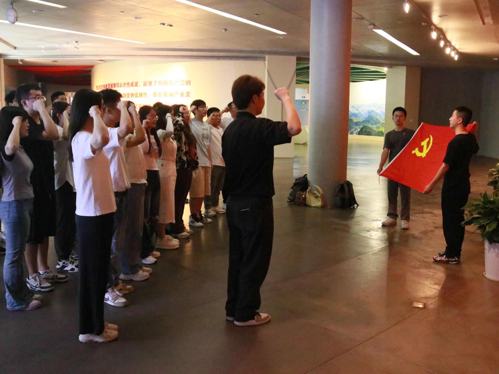众志成城,万众一心。参观结束后,在党旗面前,徐励漪老师带领全体党员同志重温入党誓词。纪念馆中回响着铿锵有力的宣誓声,彰显了党员同志们坚定理想信念,不忘初心、牢记使命的决心。