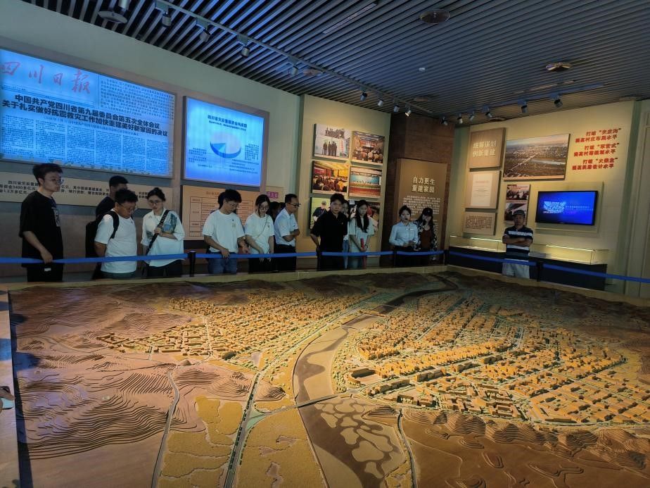 下午15点,全体成员前往北川新县城,亲眼见证了北川灾后重建的强大生命力与北川人民重构美好生活的不懈努力。纪念广场下浓烈的羌族文化与现代城市风貌相互交融,人民其乐融融,深刻印证了胡锦涛同志那句“任何困难都难不倒英雄的中国人民!”