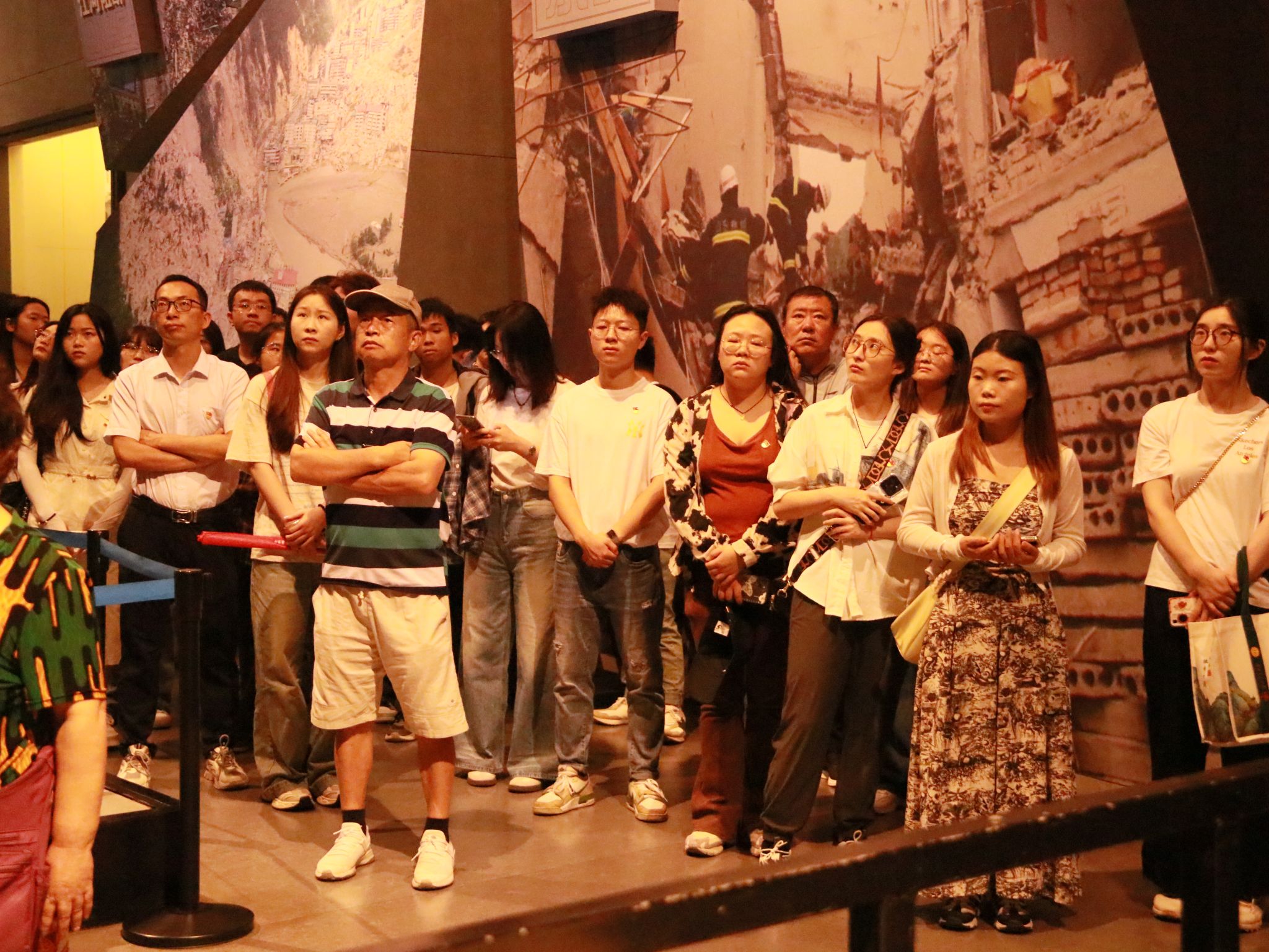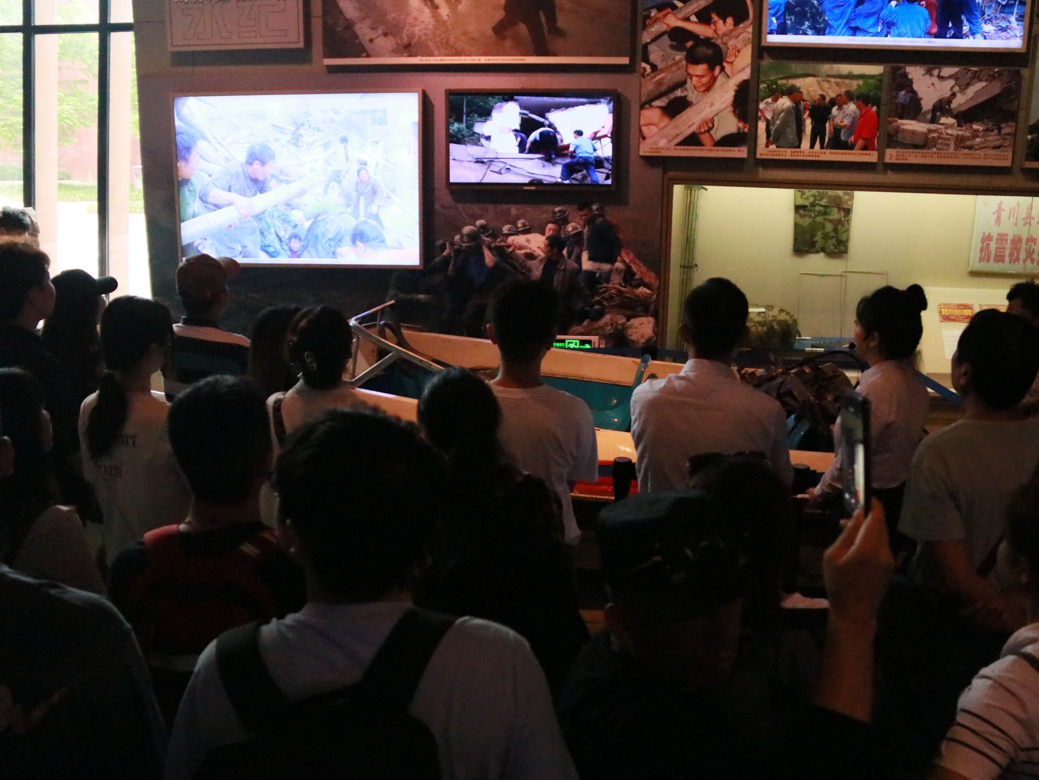 面对空前惨烈的灾难,在党中央的坚强领导下,全党全军全国各族人民众志成城、迎难而上,万众一心抗震救灾,胡锦涛同志曾对在场抗震救灾的官兵和群众说“我坚信,任何困难都难不倒英雄的中国人民!”参观途中,展馆中陈列的国际国内的地震报导、随着政府针对灾情重要指示的到来,无数的救灾抢险工具、记录地震现场的珍贵录像印入眼帘。一张张武警官兵奋不顾身救援灾区的现场照片,一个个人民群众互帮互助感人肺腑的地震故事,让师生党员切身感受党与人民众志成城、齐心协力抗震救灾的顽强精神以及百折不挠、不畏艰险的不屈信念。