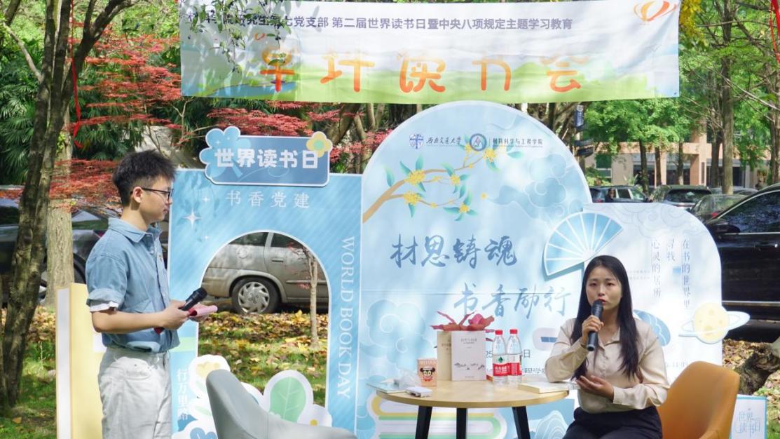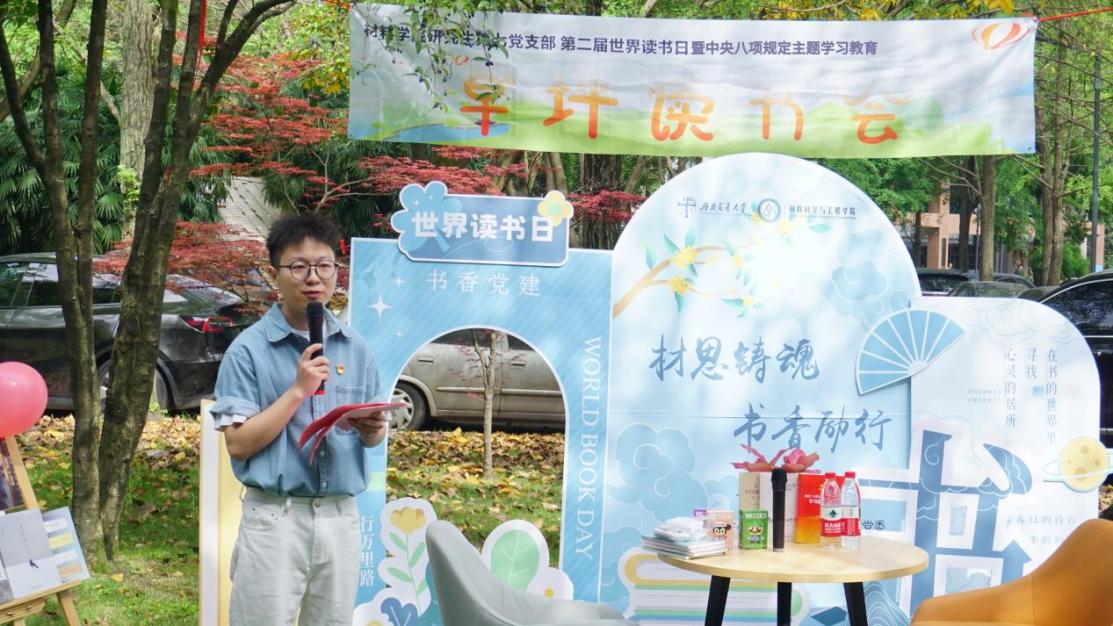 在第30个世界读书日,材料学院研究生第七党支部以“材思铸魂,书香励行”为主题,通过草坪读书分享、旧书换礼与知识竞答等多元形式深化党建实践。师生们在陈能宽院士雕像旁共读经典、畅谈感悟,将闲置书籍经公益组织送往山区学校,既倡导资源循环利用,又为教育公平助力。活动融入音乐表演和八项规定专题问答,让理论学习生动可感。党员们表示,未来将坚守科研初心,把环保理念与奉献精神融入日常,用实际行动展现出新时代青年担当。
