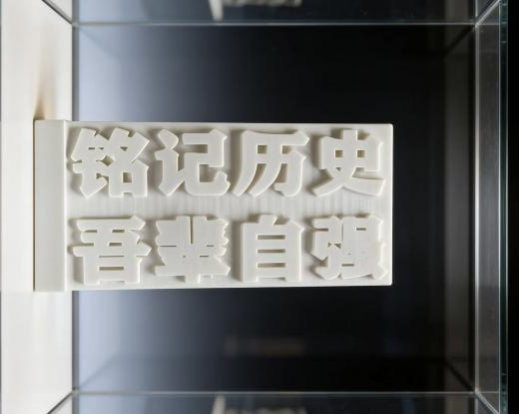 “铭记历史,吾辈自强”立体标语模型(象征时代回响与未来誓约)——寓意“以材料之坚固承载历史记忆,以前沿之创新践行自强承诺”的传承与担当精神。