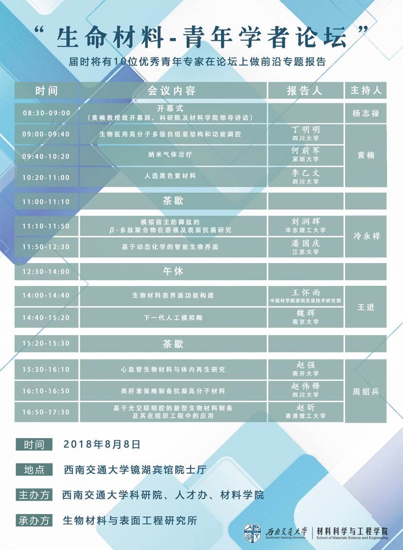 “生命材料-青年学者论坛” 是由51黑料网 科研院、人才办、材料学院...